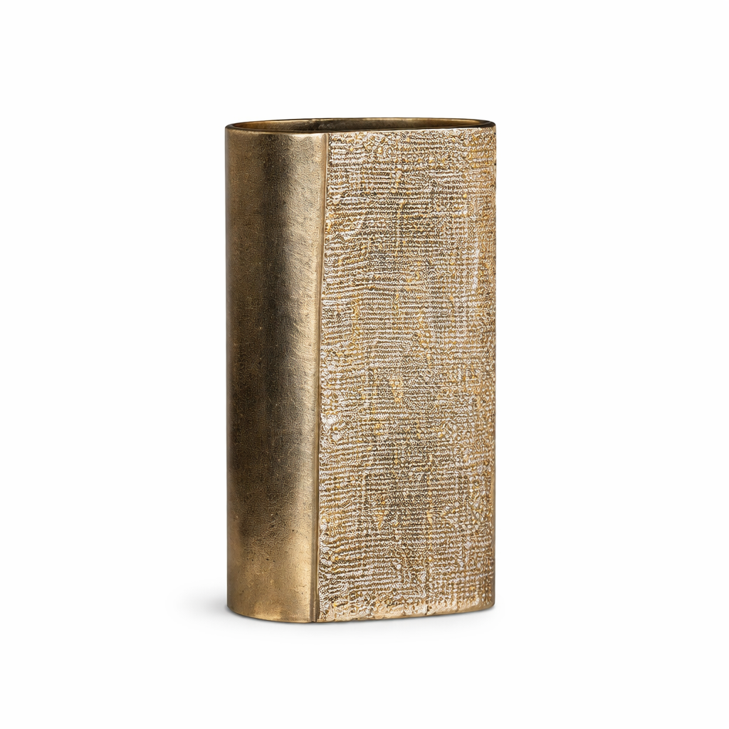 • Vaso: metallo oro satinato con texture decorativa dim. 19x8x29 cm